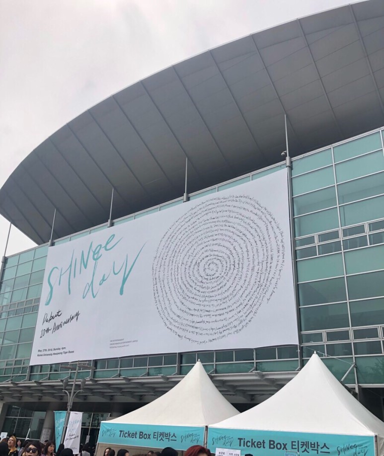체육관 앞의 샤이니 데이 전광판