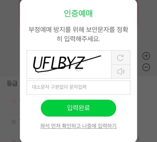 어느 콘서트 티켓팅이든 보안문자 쓰는게 젤 힘든듯...